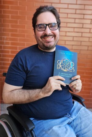 Sobre o autor: Formado em Biblioteconomia, Igor Girão coordena o Setor de Leitura Acessível da Biblioteca Pública Estadual do Ceará, onde atua diretamente na promoção da acessibilidade cultural. Cadeirante e com baixa visão, tornou-se o primeiro homem com deficiência múltipla a concluir um mestrado em Ciência da Informação no Brasil. Também é mediador de leitura formado pela Fundação Demócrito Rocha. Na literatura, estreou com Além do Véu, uma fantasia urbana com elementos do folclore que subverte a imagem tradicional do anjo benevolente. Agora lança Ouroboros, distopia que questiona estruturas de poder e expõe fraturas da sociedade contemporânea.